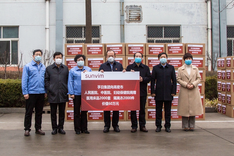此外,為了援馳抗疫,1月29日,孚日集團向高密市慈善總會捐款100萬元,專項用于疫情防控。復工復產后,孚日集團在第一時間組建起醫用產品生產專線,加班加點趕制醫用床品、隔離衣等防疫物資。2月14日,孚日集團通過高密市慈善總會向高密市人民醫院、中醫院、婦幼保健院定向捐贈被套、床單、枕套等醫用床品2000套和隔離衣2000件,并安排專車送往各醫院指定地點。該批醫用物資總價值為60萬元。